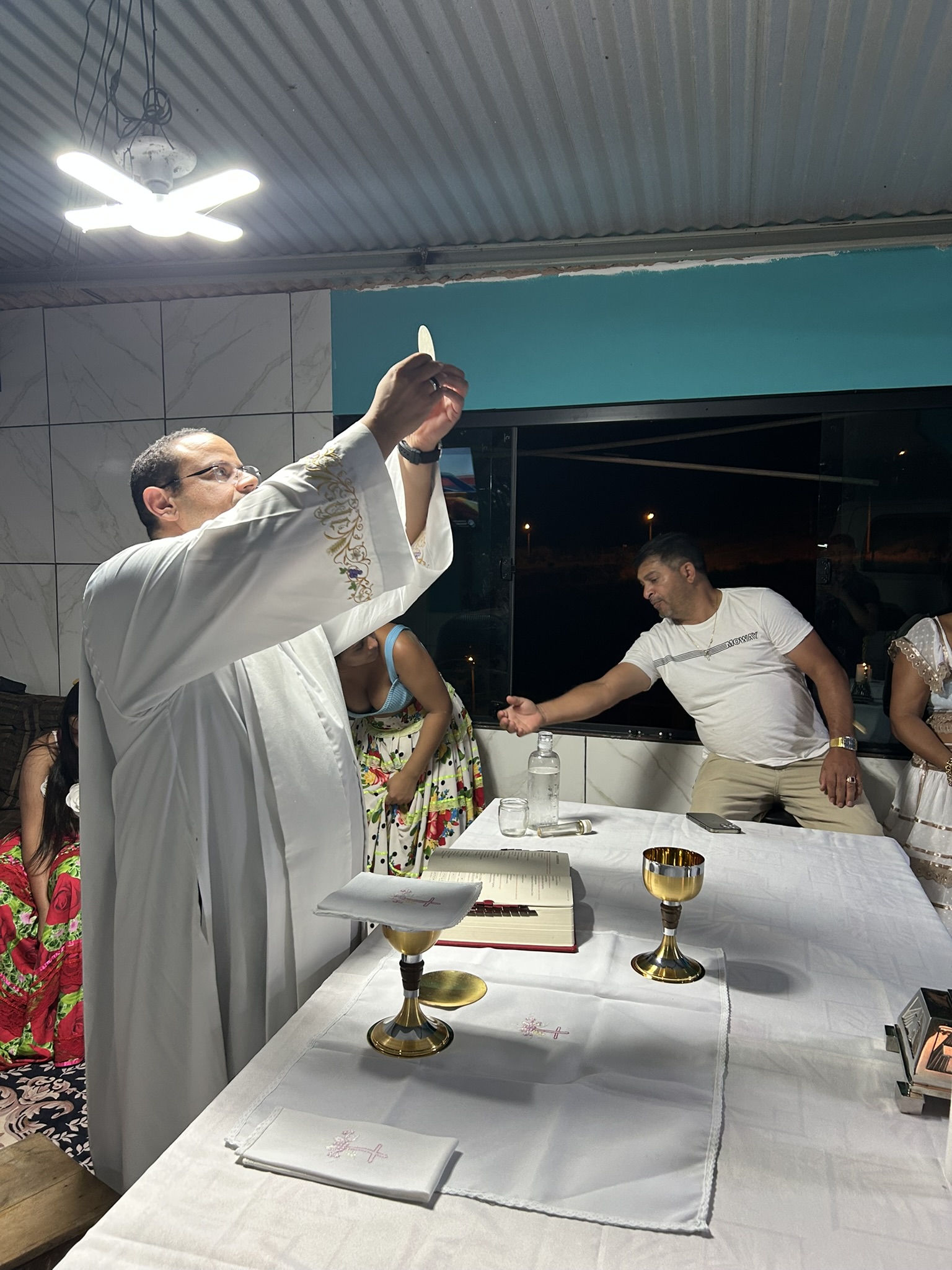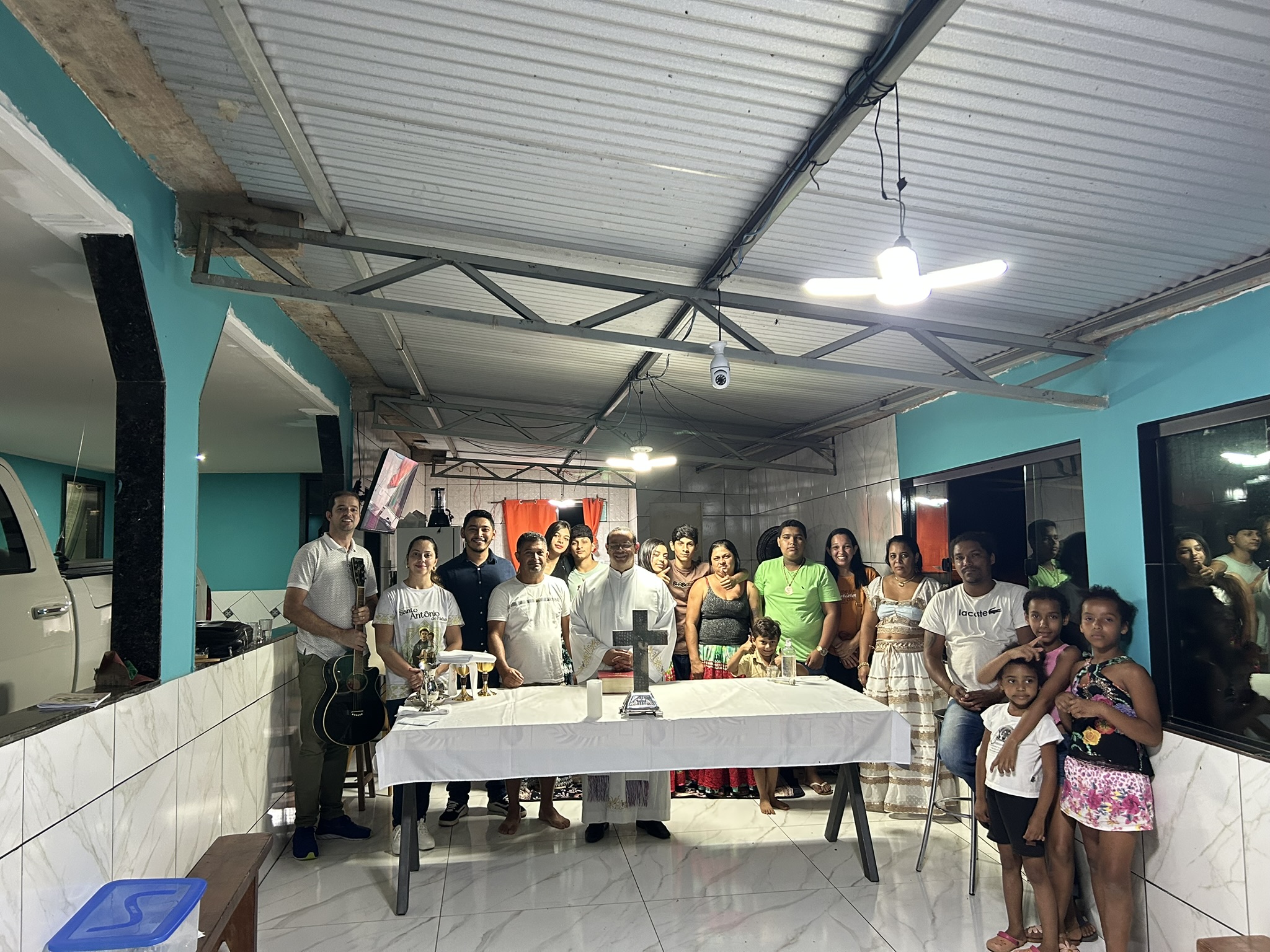 A celebração da Eucaristia na casa da família reuniu parentes e vizinhos, fortalecendo o sentido de comunidade. Leandro, músico e membro da comissão diocesana ajudou nos cantos litúrgicos, fruto direto do zelo pastoral do Pe. Clebson.